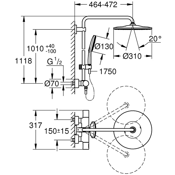• Верхний душ