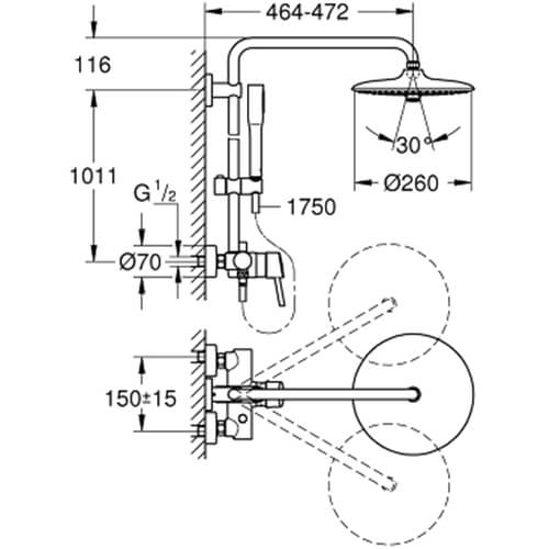 Верхний душ; Ручной душ; Штанга; Кронштейн; Шланг; Набор креплений