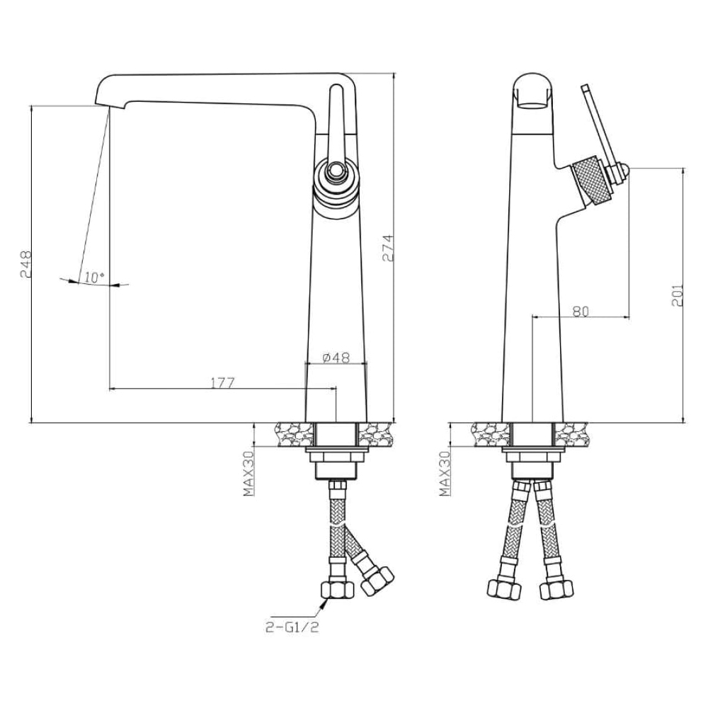смеситель; комплект креплений; комплект гибкой подводки; инструкция.
